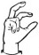 На ћирилици написано ЛАРА КАЗНОВАЦ састоји се из 12 слова [?]. Исписано ћириличном једноручном азбуком за глувонеме: